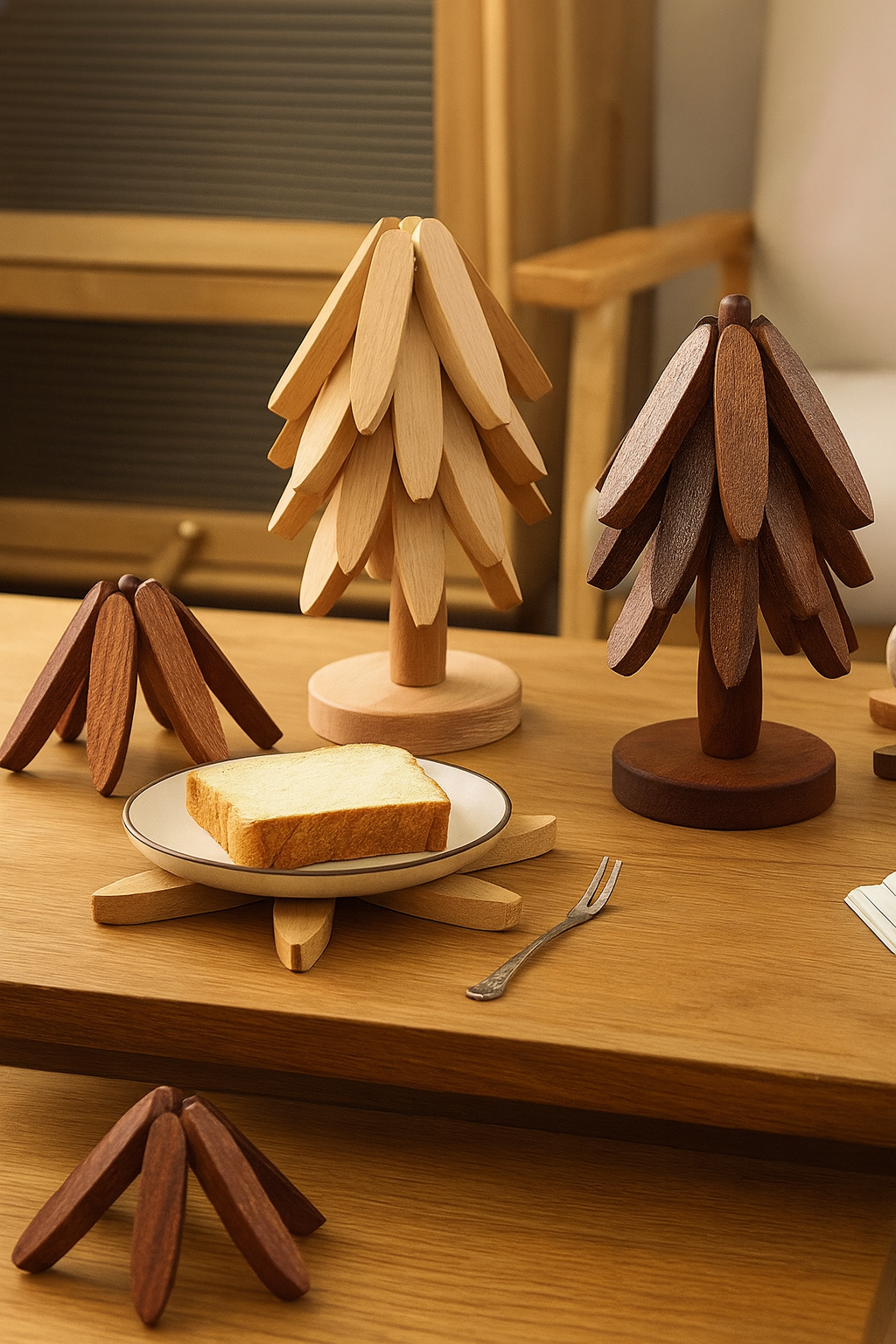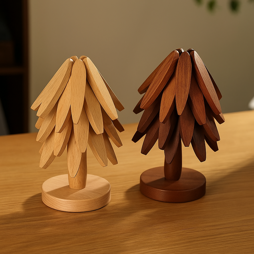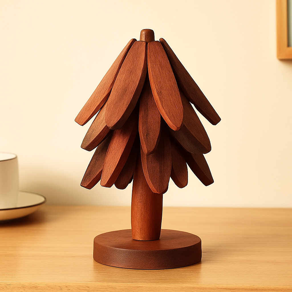 - Verfijnd design: de “takken”/“bladeren” van de boom kunnen lichtjes uitklappen (afhankelijk van model) waardoor de onderzetter flexibel is – en ook mooi vormgeeft.
